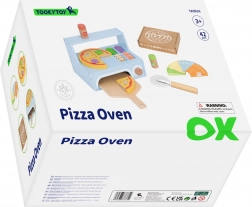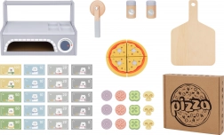 Das Pizza-Set enthält abnehmbare Pizzastücke und verschiedene Zutaten, die zur Kreation und Dekoration anregen.