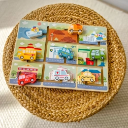 Das Spiel fördert auf natürliche Weise Feinmotorik, Geduld und Problemlösefähigkeiten. Thematische Szenen und kräftige Farben unterstützen die Wahrnehmung von Formen und Farben sowie den Wortschatz – Kinder lernen spielerisch die Namen der Fahrzeuge und ihre Funktionen in der Stadt.