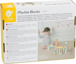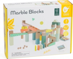 Das Holzset zum Bau einer Murmelbahn von Classic World ist für Kinder ab 3 Jahren geeignet. Dieses Spielzeug enthält 62 unterschiedlich geformte und große Blöcke, die endlose Möglichkeiten für den Bau kreativer Bahnen bieten. Pastellfarbene und ungiftige Beschichtungen sorgen für Sicherheit und ein ästhetisches Erscheinungsbild des Spielzeugs.