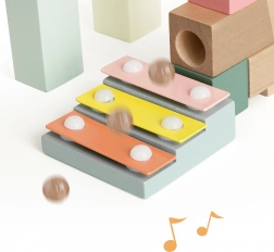 Dank der verschiedenen Formen und der Möglichkeit, die Bahn zu bauen, fördert das Spielzeug die Entwicklung motorischer und koordinativer Fähigkeiten.