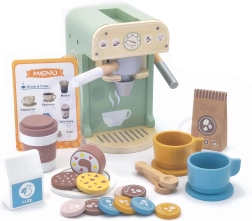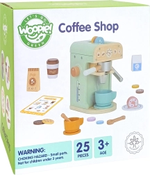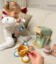 Das Set von Woopie Green ist die ideale Wahl für Kinder, die davon träumen, kleine Baristas zu werden. Mit 25 Elementen, die eine Kaffeemaschine, Tassen, Kapseln und Milch umfassen, können Kinder Erwachsene nachahmen und ihre Fähigkeiten beim Spielen im Café entwickeln. Dieses Set ist aus naturbelassenem Holz und kindersicheren Farben hergestellt, was ein realistisches Aussehen und sicheres Spielen gewährleistet.