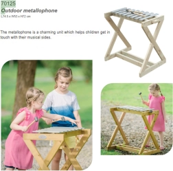 Das Instrument besteht aus hochwertigem Holz aus verantwortungsvollen Quellen und ist so konzipiert, dass es Regen und Sonne standhält. Dank der zwei Schlägel können auch zwei Kinder gleichzeitig spielen und gemeinsam die Magie musikalischer Zusammenarbeit entdecken.