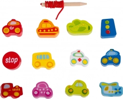 Entdecken Sie ein cleveres Spielzeug, das Lernen und Spaß verbindet. Holzperlen in Form von Autos, Bus, Flugzeug und Verkehrsschildern lassen sich leicht auf eine Schnur mit Holzende auffädeln. Beim Spielen trainieren Kinder ihre Feinmotorik, Bewegungsgenauigkeit sowie das Erkennen von Farben und Formen.