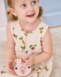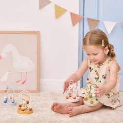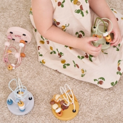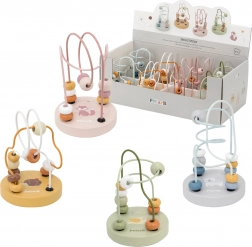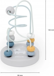 Das Kinder-Perlenlabyrinth mit kompakter Holzbasis und glatten Metallschleifen bietet spaßiges Schieben von 10 Perlen in zwei Formen. Diese sensorische Aktivität fördert die Bewegungspräzision, die Fingerfertigkeit und erste Versuche der Problemlösung. Stilvolle Pastelltöne und liebevolle Tierillustrationen passen in jedes Kinderzimmer.
