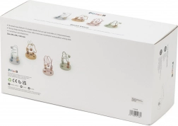 Fröhliche Tierillustrationen auf der Basis und sanfte Farben halten die Aufmerksamkeit und fördern die visuelle Wahrnehmung.