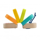 Die farbigen Segmente klappern beim Bewegen angenehm und fördern die sensorische Wahrnehmung sowie die Neugier des Kindes.