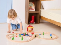 Dank durchdachter Basis und Zubehör fügt es sich nahtlos in die meisten Holzschienen und -sets ein.