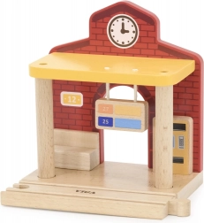 Ergänzen Sie Ihre Holzeisenbahn um einen kompakten Bahnhof mit realistischen Details. Die stabile Holzkonstruktion, ein gut lesbares Zifferblatt und ein Vordach schaffen die authentische Atmosphäre eines Bahnhofs. Integrierte batteriegespeiste Effekte unterstreichen jeden Halt und fördern interaktives Spielen.