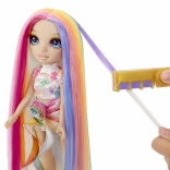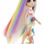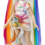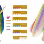 Die Puppe hat außergewöhnlich lange, glatte Haare mit Regenbogensträhnen, die sich leicht kämmen, flechten und zu verschiedenen Styles formen lassen – von Wellen über Zöpfe bis hin zu markanten Farblinien.