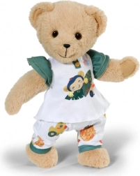 Dieses bezaubernde Outfit mit Äffchenmotiv ist für kreatives Spielen und die Förderung der Fantasie entworfen. Das T‑Shirt mit grünen Rüschenärmeln und Knöpfchen zeigt ein lächelndes Äffchen zwischen Bananenblättern, während die Hosen mit buntem Obstprint und dem Motiv von Ente Berta auffallen. Ideal für BABY born 43 cm und den BABY born Teddy.