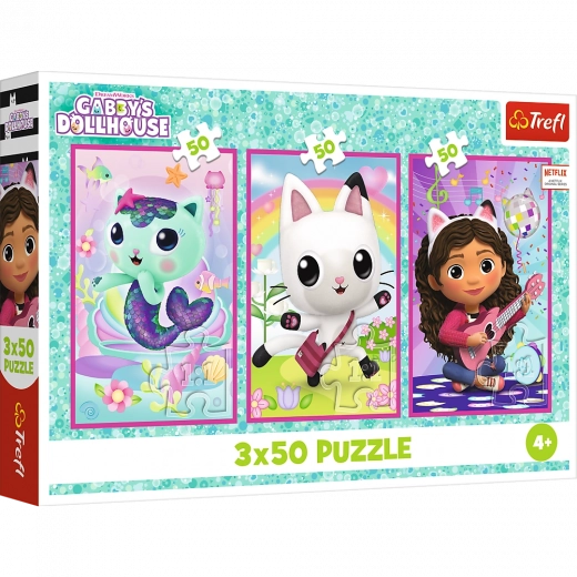 Puzzle 3x50 - Treffen Sie Gabby und ihre Kätzchen ist eine unterhaltsame Sammlung inspiriert von der Show Gabbys Puppenhaus. Puzzeln ist nicht nur ein Vergnügen, sondern auch eine Möglichkeit, Feinmotorik und Vorstellungskraft zu entwickeln.