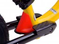 Mehr Sicherheit und Komfort bieten der Lenkeinschlagsbegrenzer, der zu starke Lenkbewegungen verhindert, ergonomische Lenker mit rutschfesten Griffen sowie die Schnellspanner-Höhenverstellung des Sattels (ca. 31–37 cm), damit das Laufrad mit dem Kind mitwächst. Hintere Fußstützen ermöglichen beim Bergabfahren ein bequemes Abstellen der Füße und das Trainieren der Balance.