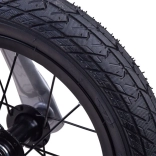 Profilierte Reifen und Metallspeichen sorgen für guten Grip, Stabilität und eine ruhige Fahrt auf verschiedenen Untergründen.
