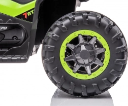 Dieses elektrische Kinder-Quad überzeugt mit auffälligem grün-schwarzem Design und realistischer Ausführung. Breite Reifen mit tiefem Profil geben Sicherheit auf unebenem Terrain, während ergonomische Lenker mit rutschfesten Griffen ein bequemes und leichtes Handling ermöglichen. Ideal für Hof, Garten und befestigte Wege.