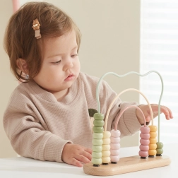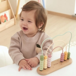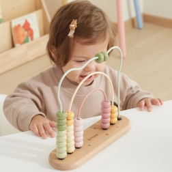Pastellfarbene Perlen auf gewundenen Bahnen motivieren Kinder, Zahlen zu entdecken, zu sortieren und Mengen zu vergleichen – alles spielerisch.