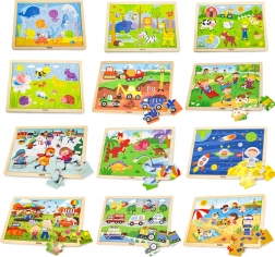 Das Viga Holzpuzzle-Set ist die ideale Wahl für die ersten systematischen Puzzleerfahrungen. Jede der 12 Tafeln enthält einen Rahmen mit 24 stabilen Teilen, die perfekt passen und gut in Kinderhänden liegen. Einfache Formen, fröhliche Bilder und leuchtende Farben fördern die Spielfreude und die schrittweise Verbesserung der Fähigkeiten.