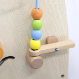 Diese hochwertig verarbeitete Wandtafel in Halbkreisform eröffnet Kindern eine bunte Welt des Entdeckens: Zahnräder, Labyrinth, Perlenbahn, Formenzuordnung, Musikelemente (Xylophon, Gong), Spiegel, „Wetter“ und „Jahreszeiten“, Drehscheibe sowie Thermometer. Durch die robuste Wandmontage spart sie Platz und fördert Hand-Auge-Koordination, Farben- und Formerkennung sowie logisches Denken.