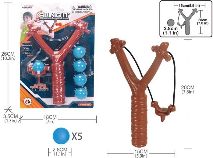 Unsere Schleuder mit fünf Bällen ist eine ausgezeichnete Wahl für Kinder und Erwachsene, die Outdoor-Aktivitäten lieben. Die Schleuder hat kompakte Abmessungen von 15x20 cm, was eine einfache Handhabung und Portabilität ermöglicht. Die Bälle mit einem Durchmesser von 2,8 cm sind perfekt für präzise Schüsse.