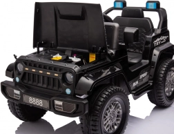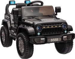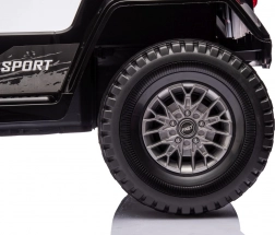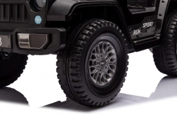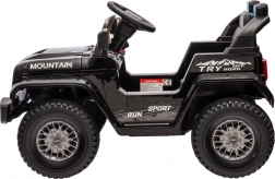 Das schwarze elektrische Auto Off Road Mountain für Kinder ist mit besonderem Augenmerk auf Details gestaltet, die echte Geländefahrzeuge nachahmen.