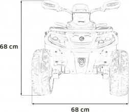 Fahrzeugabmessungen: Länge 108 cm, Breite 68 cm, Höhe 68 cm.