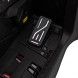 Bequemer Sitz: Schwarzer, belüfteter Sitz aus Kunstleder mit Sicherheitsgurten für komfortables und sicheres Fahren.