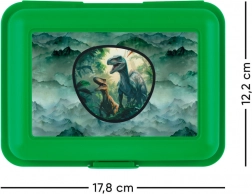 Die Kunststoff-Brotzeitbox mit einem Dinosaurierbild ist nicht nur funktional, sondern auch stilvoll. Mit traditionellem Verschluss wird Ihr Essen sicher aufbewahrt. Die Trennwand ermöglicht eine einfache Organisation und Trennung der Lebensmittel.