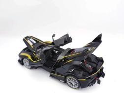Dank der Metallkonstruktion ist das Modellauto robust und langlebig, was es perfekt für die langfristige Präsentation in Ihren Regalen oder als großartiges Geschenk für Auto-Enthusiasten macht. Bereiten Sie sich darauf vor, dass dieses Modell durch seine schwarze Lackierung und charakteristischen gelben Elemente, die das echte Rennfahrzeug perfekt nachbilden, Aufmerksamkeit erregen wird.