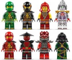 Für das geballte Action-Paket sorgen 8 Minifiguren – die Ninja-Helden Lloyd, Kai, Cole und Wyldfyre mit Unterstützung von Pixal gegen die Schurken Drix, Zark und einen Drachenkämpfer. Mit dabei ist der Spinjitzu-Spinner: Figur einsetzen, Auslöser drücken und zusehen, wie sie sich dreht und ins Ziel kracht.