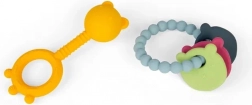 Kombiniert Rassel und Beißring in einem, bietet Linderung bei Zahnungsschmerzen und sensorische Reize.