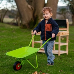 Die Kinderschubkarre ist aus hochwertigen Metallmaterialien gefertigt, die Stabilität und Langlebigkeit gewährleisten.