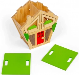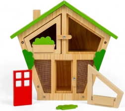 Das Insektenhotel bietet Kindern die Möglichkeit, verschiedene Insektenarten zu beobachten und viele interessante Fakten über ihr Leben zu erfahren. Kindgerechtes Design umfasst ein abnehmbares Dach, Türen und Fenster, sodass Kinder leicht hineinschauen und die kleinen Bewohner beobachten können.