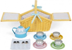 Picknick-Set im Korb für Kinder bietet Kindern die Möglichkeit, ihre eigenen Szenarien und Geschichten zu erfinden. Das Set enthält einen Weidenkorb mit 18 Teilen, wie Blechbechern, Tellern und Teekannen, die die Kinder stundenlang unterhalten und ihre sozialen Fähigkeiten stärken.