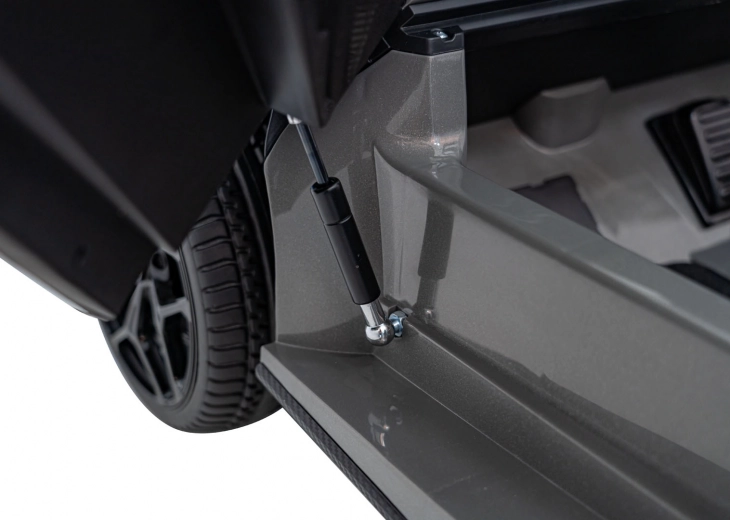 Eltern schätzen die 2,4 GHz Fernbedienung mit Safety Stop und der Wahl aus 3 Geschwindigkeiten. Kinder genießen sanftes Anfahren, Vorwärts-/Rückwärtsfahrt, öffnende Scherentüren, bequeme Sitze aus Eco-Leder sowie umfangreiches Infotainment – FM, Bluetooth, USB, MP3, AUX, Effekte und Hupe am Lenkrad.