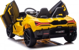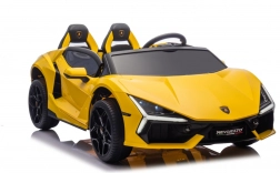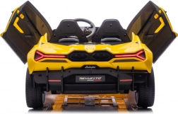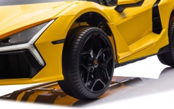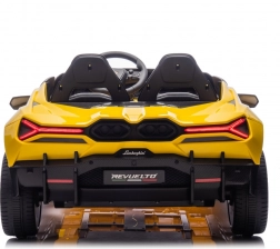Das Modell LAMBORGHINI Revuelto XL besticht durch ein realistisches Design mit nach oben schwenkenden Türen, komfortables Fahrwerk mit hinteren Stoßdämpfern und leisen EVA‑Rädern 24×9 cm. Kinder freuen sich über den sanften Softstart, die Wahl aus zwei Geschwindigkeiten sowie Fahrt vorwärts/rückwärts, Eltern über die volle Kontrolle dank Fernbedienung mit STOP‑Taste.