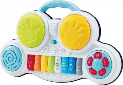 Entdecken Sie die Welt der Musik mit dem interaktiven Klavier mit Trommeln, das Spaß und Lernen vereint. Acht Tasten spielen Melodien und Tiergeräusche, während ein Paar berührungsempfindlicher Trommeln Kinder dazu anregt, Rhythmus zu entdecken. Sanfte LED-Beleuchtung sorgt für eine angenehme Atmosphäre und motiviert zum Weiterspielen.