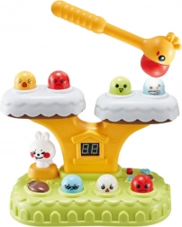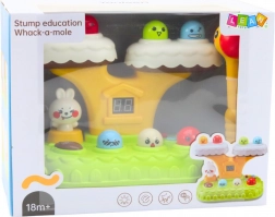 Das Whack‑a‑Mole‑Spiel bringt den klassischen „Hau‑Spaß“ in modernem Design. Bunte Figuren springen aus einem Baumstamm, das Kind trifft sie mit dem weichen Hammer und verfolgt seinen Fortschritt auf dem digitalen Punktzähler. 20 integrierte Melodien und Lichteffekte sorgen für eine fröhliche Atmosphäre, während das sich drehende Häschen die Interaktion zusätzlich verstärkt.