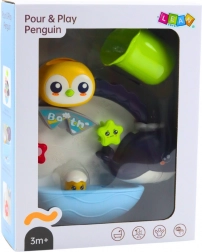Das interaktive Badespielzeug mit einem Pinguin und weiteren Meerestierchen bringt Kindern viel Spaß und Entdeckungslust. Beim Eingießen von Wasser setzen sich die Tierchen in Bewegung und beginnen sich zu drehen, was die Neugier weckt und die Badezeit verlängert. Enthalten ist ein Becher mit Löchern zum Umgießen, mit dem Kinder spielerisch Ursache-Wirkungs-Prinzipien begreifen.