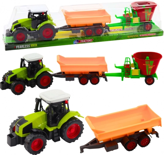 Traktor mit Kippanhänger und Futterwagen – Set für kleine Landwirte