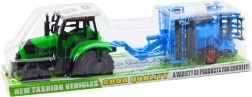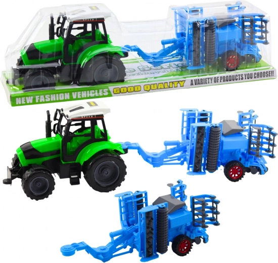 Enthalten sind Traktor, Scheibenegge und eine Originalverpackung – ideal als Geschenk für kleine Landwirte.