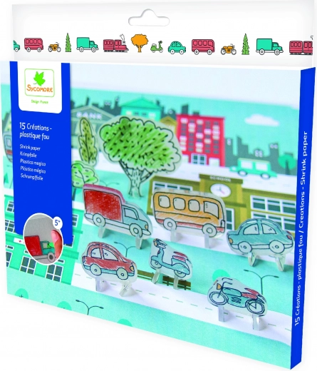 Gestalten Sie Ihre eigene Sammlung von Verkehrsmitteln aus magischer Schrumpffolie. Kinder übertragen nach Schablone das Motiv auf die matte Seite der Folie, kolorieren es mit Filzstiften oder Buntstiften, schneiden es aus und backen es kurz im Ofen. Während des Backens schrumpft das Bild, wird stabil und erhält einen schönen Glanz – perfekt als Anhänger, Magnet oder Dekoration.