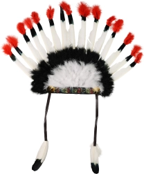 Vervollständige dein Kostüm mit einem auffälligen Indianer-Stirnband mit Federn in kontrastierenden Farben. Das Stirnband ist für ganztägigen Tragekomfort konzipiert und passt sich dank des elastischen Bandes zuverlässig den meisten Größen an.