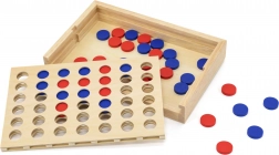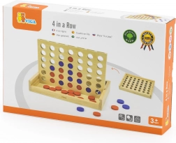 Das Holz-Logikspiel 4 in einer Reihe der Marke Viga ist ideal für Kinder und Erwachsene, die strategische Herausforderungen lieben. Ziel ist es, vier Spielsteine in eine Linie zu bringen – waagerecht, senkrecht oder diagonal. Dieses klassische und kompakte Brettspiel bietet Familienspaß, fördert logisches Denken und trainiert Strategie sowie Geduld.