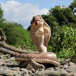 Detailiertes Muster, geformte „Haube“ und eine weiche Oberfläche machen die Kobra zu einem treuen und zugleich anschmiegsamen Begleiter für Kinder und Erwachsene.