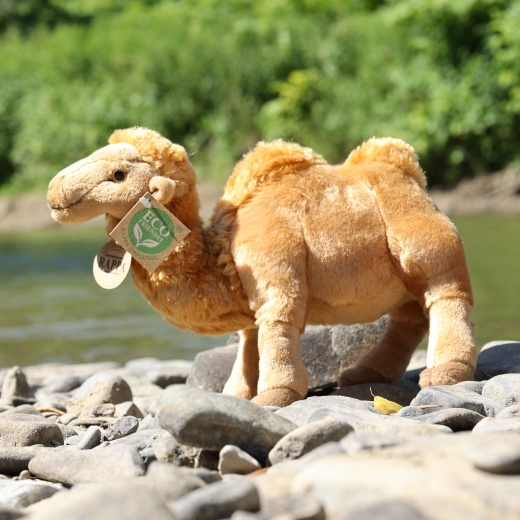 Dieses Plüschkamel besticht durch ein weiches, angenehm zu berührendes Material und eine detailreiche Verarbeitung, wodurch es nahezu lebensecht wirkt. Dank der sicheren Füllung aus recycelten PET‑Flaschen ist es sowohl umweltschonend als auch eine gute Wahl für die Allerkleinsten.
