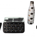 Dank der isolierenden Konstruktion bleibt die Getränketemperatur länger erhalten. Der schlanke Körper (Höhe 26 cm, Durchmesser 7 cm) passt bequem in Getränkehalter und Rucksäcke. Die elegante Grafik mit Katzen unterstreicht deinen Stil.