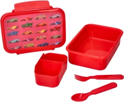 Suchen Sie eine kompakte und robuste Snackbox für Kinder und Erwachsene? Dieser Lunchbox mit fröhlichem Automotiv hält Ihr Essen frisch und sicher verschlossen. Ein praktisches Besteckset ist enthalten, sodass Sie alles griffbereit haben – egal wo Sie sind.