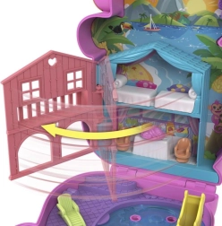 Das Polly Pocket Abenteuer in Rio Spielset bringt tropischen Spaß in Ihre Hände. Öffnen Sie das rosa Affengehäuse und entdecken Sie ein detailliertes Interieur mit Haus und Pool.