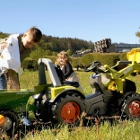 Der Anhänger wird einfach an die Standardkupplung der ROLLY TOYS Trettraktoren angehängt, wodurch sich die Spielmöglichkeiten ohne aufwendige Montage erweitern.