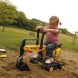 Kinder können sich mit der Maschine frei um die vertikale Achse drehen und Material in alle Richtungen aufnehmen und versetzen – wie auf einer echten Baustelle.