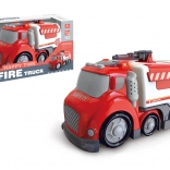 Dank der freilaufenden Räder bewegt sich das Fahrzeug leicht über verschiedene Oberflächen und ist ideal für die Haus-Einsätze kleiner Feuerwehrleute. Die Batterien 3× AG13 sind bereits enthalten, sodass der Spielspaß sofort beginnen kann.